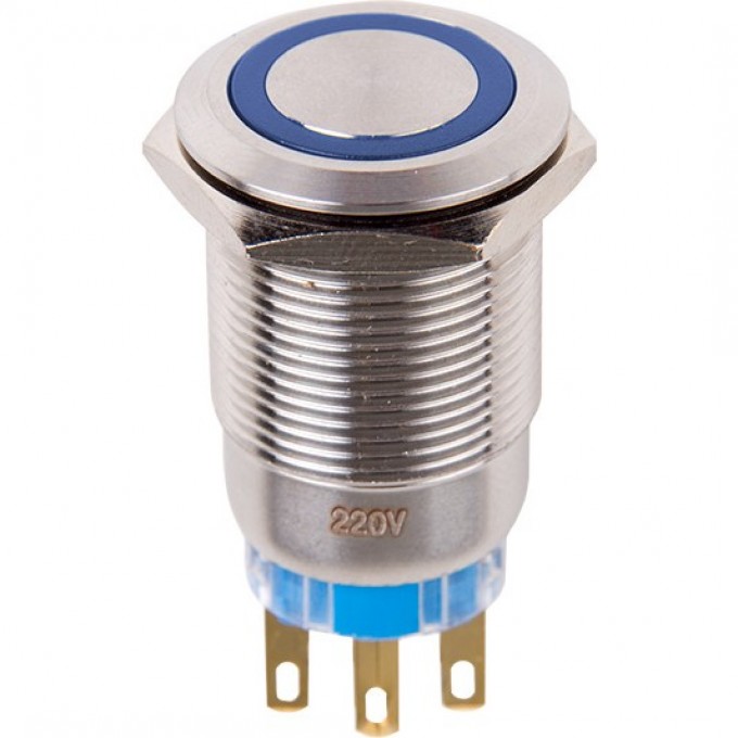 Кнопка антивандальная REXANT 19 12В фикс подсветка синяя 36-3421