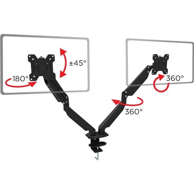 Кронштейн предназначен для крепления двух мониторов 13"-32" дюймов к столу. Оборудован газлифтом для удобной и комфортной регулировки положения экранов в любых плоскостях.
