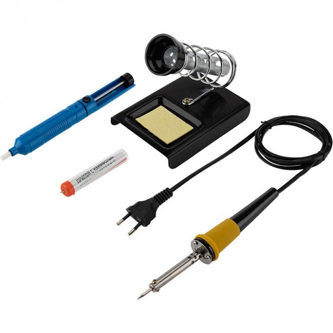 Набор для пайки REXANT №4 (паяльник 30 Вт, оловоотсос, подставка, припой, губка) 12-0163